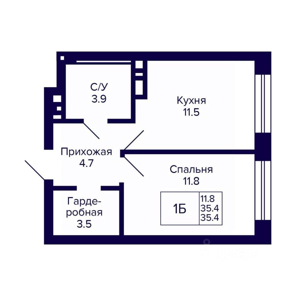 Общая площадь35,4 м²