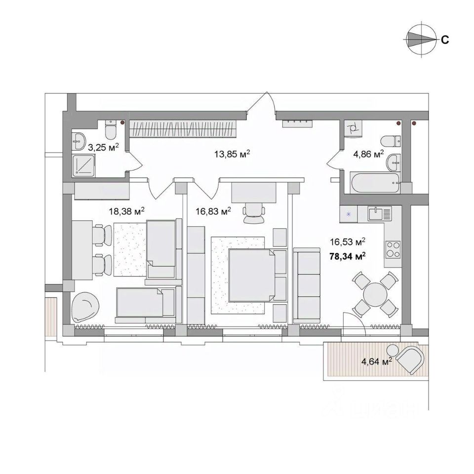 78,34 м²