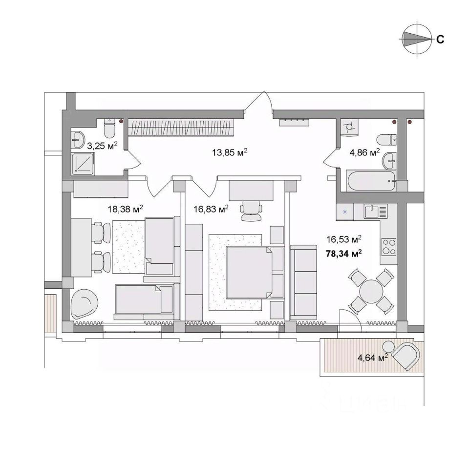 78,34 м²