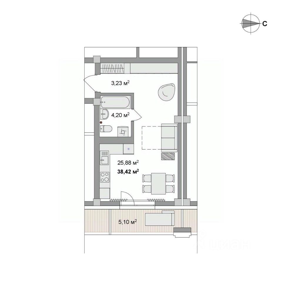 38,42 м²