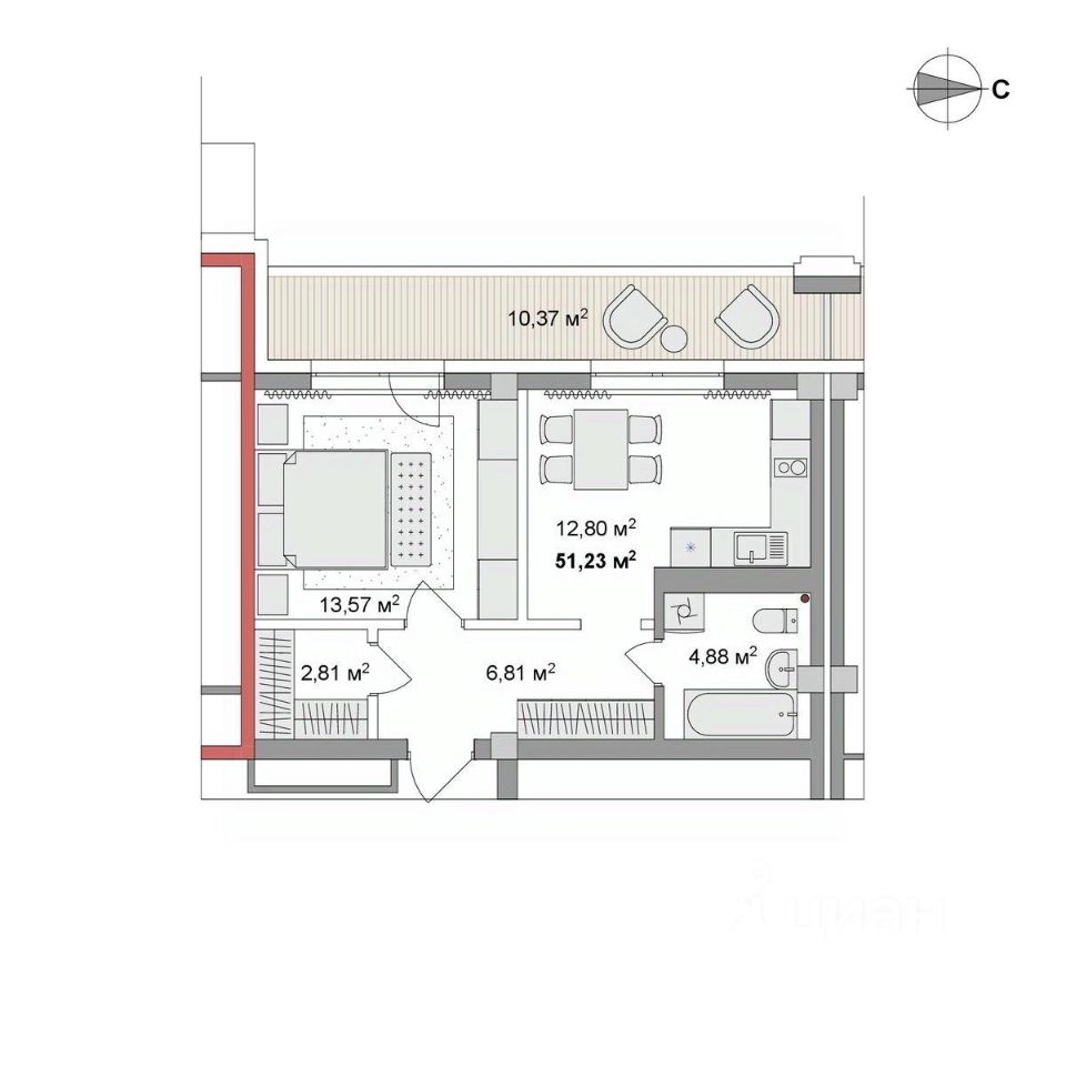 51,23 м²