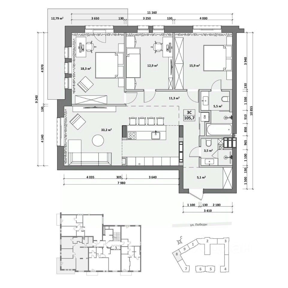 Общая площадь118,5 м²