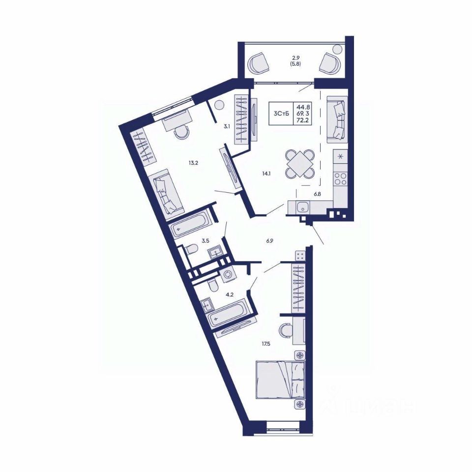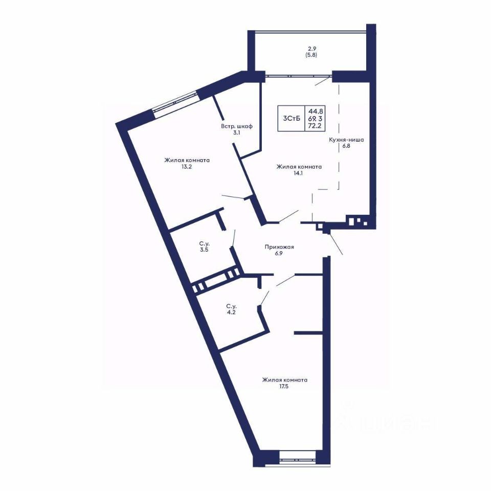 Общая площадь72,2 м²