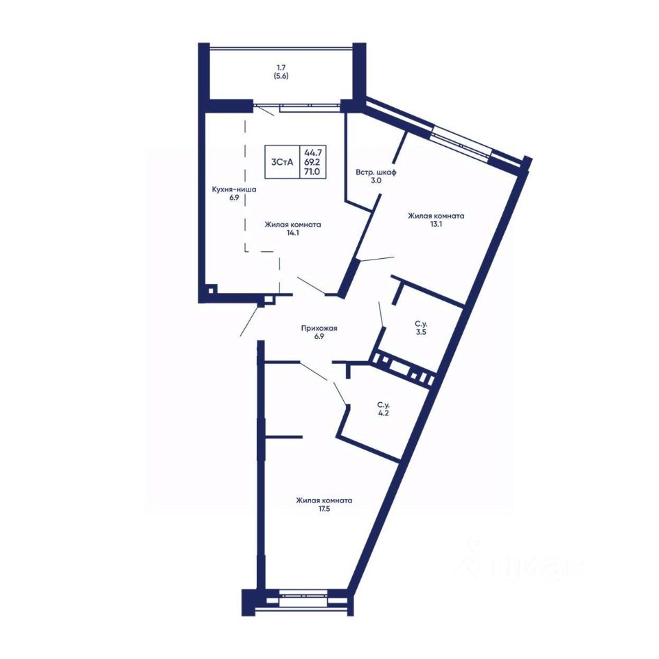 Общая площадь71 м²