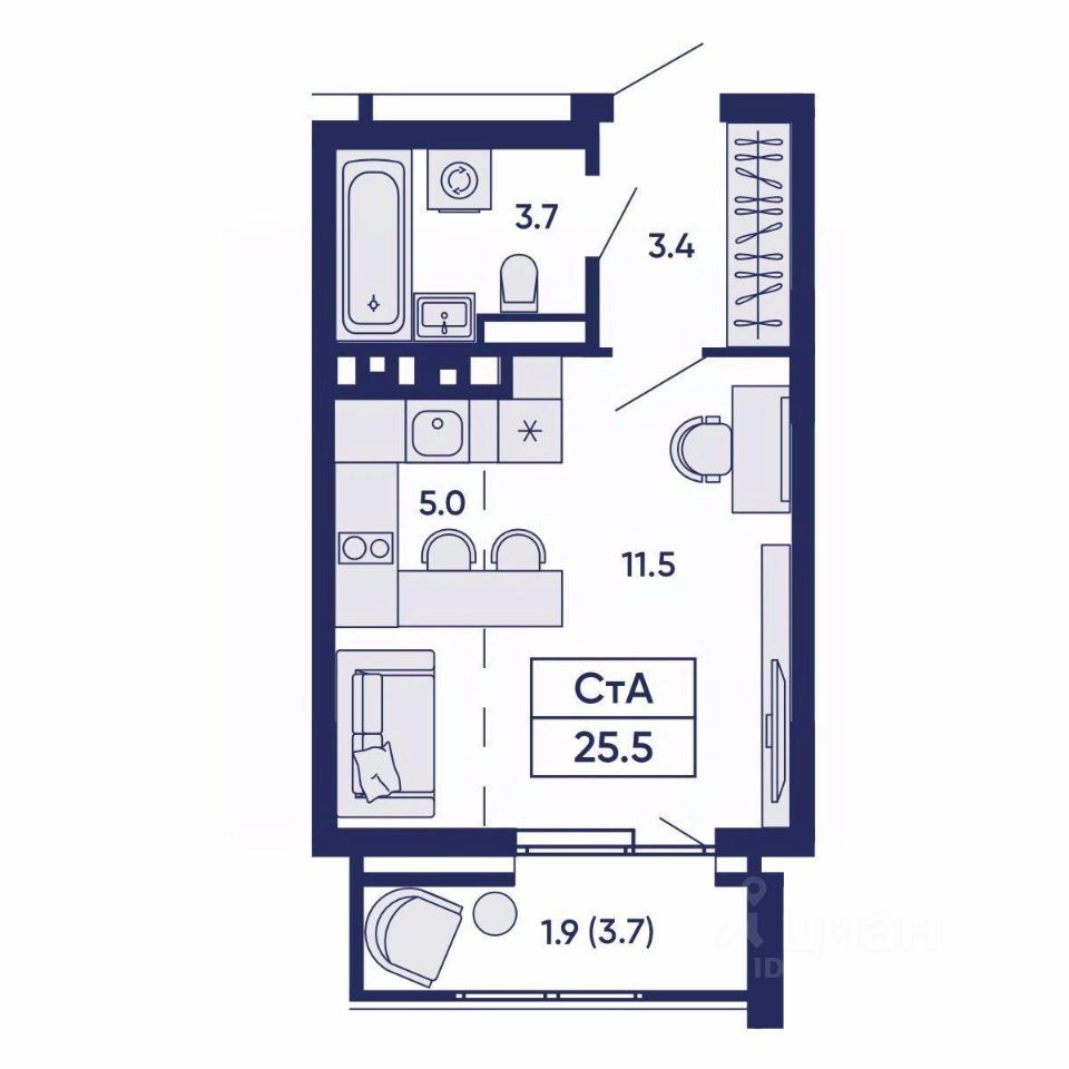 Общая площадь25,5 м²