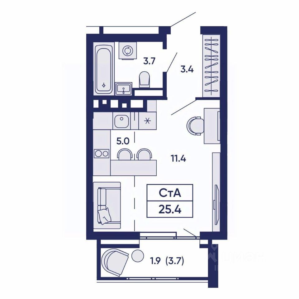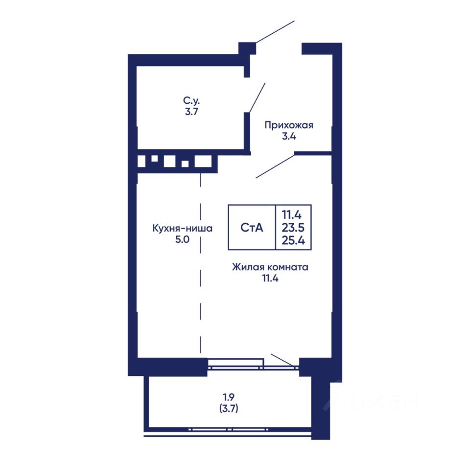 Общая площадь25,4 м²