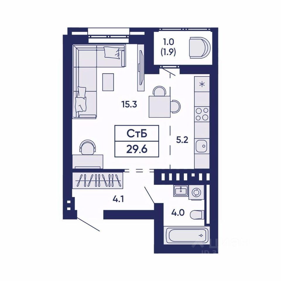 Общая площадь29,2 м²