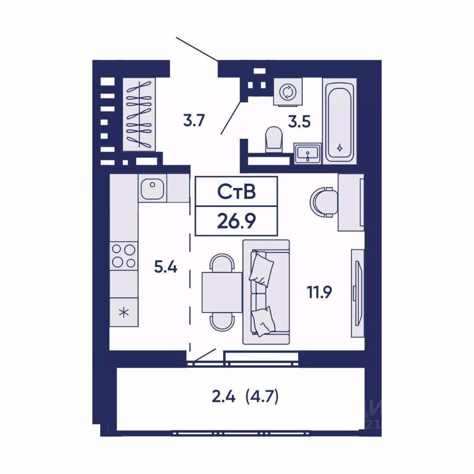 Общая площадь26,9 м²