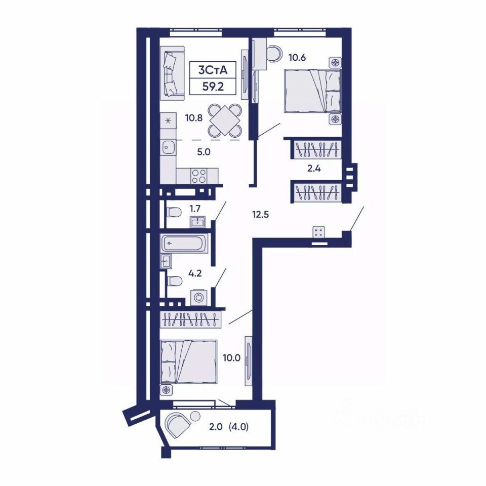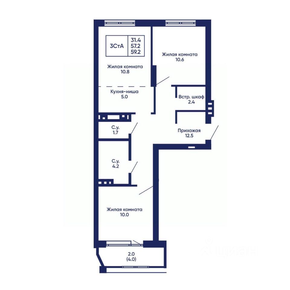 Общая площадь59,2 м²
