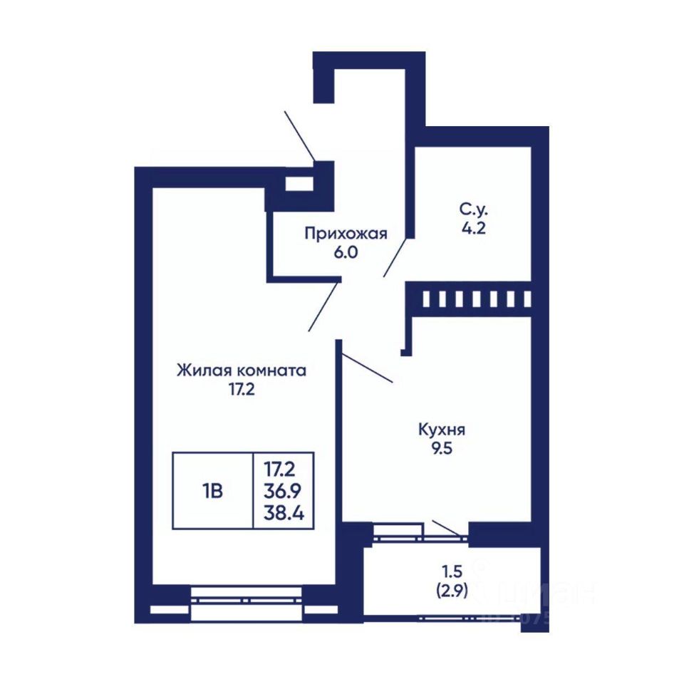 Общая площадь38,4 м²