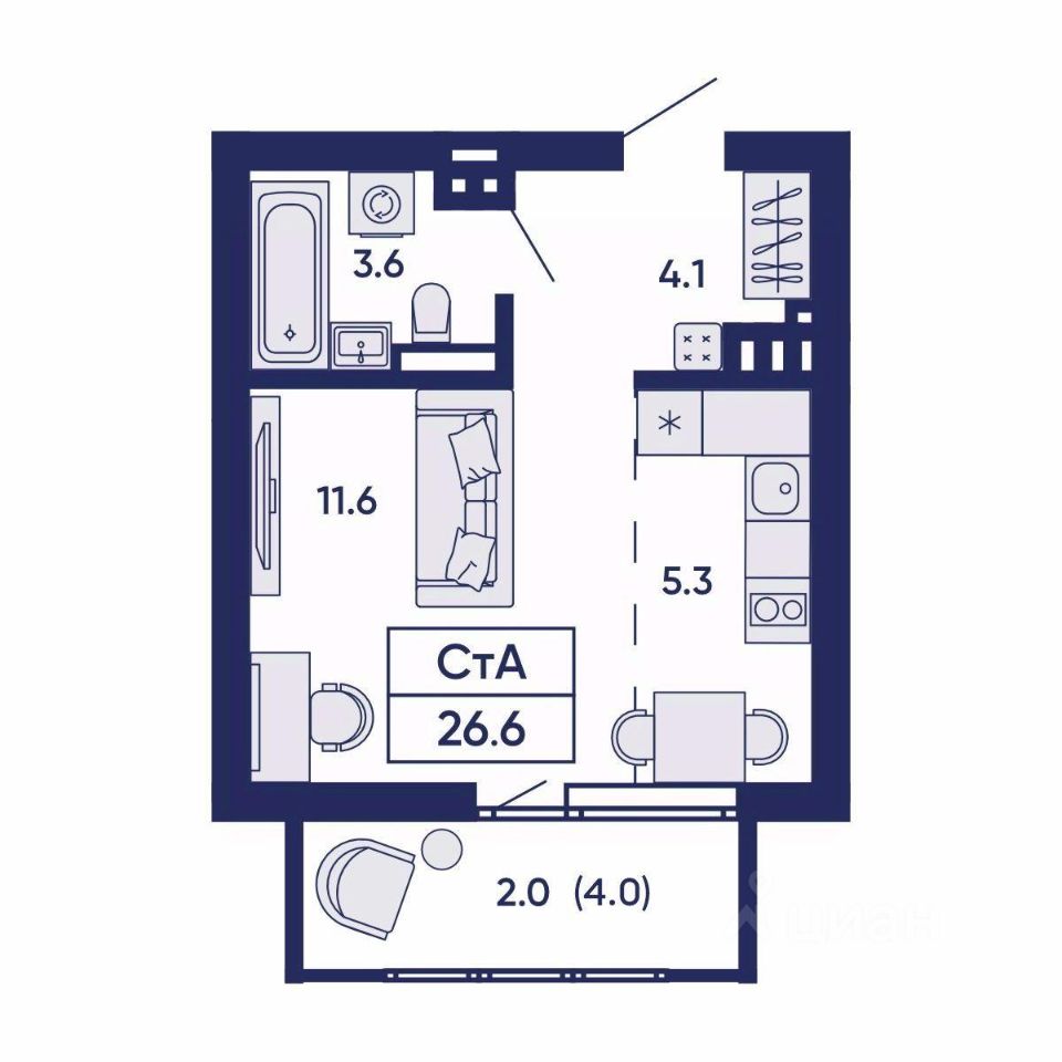 Общая площадь26,6 м²