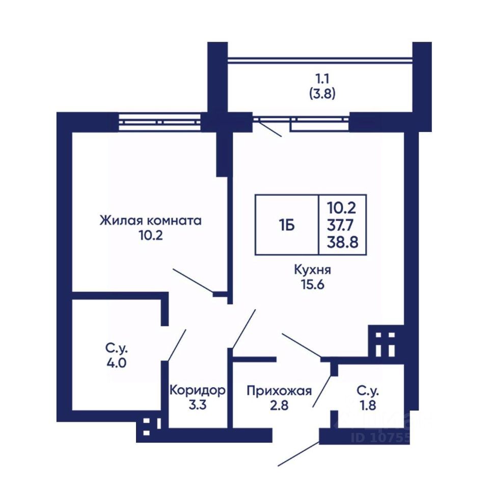 Общая площадь38,8 м²