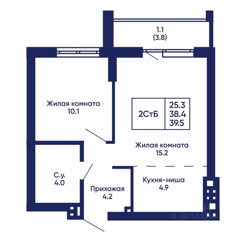 Общая площадь39,5 м²