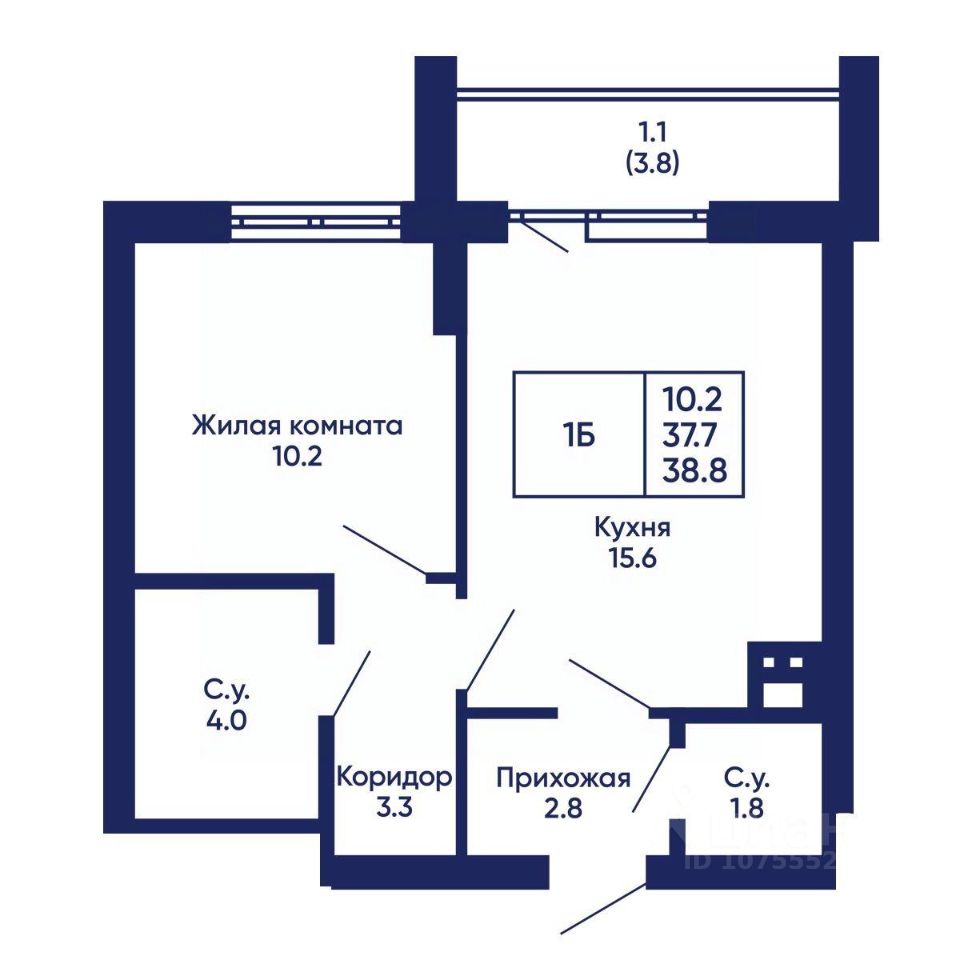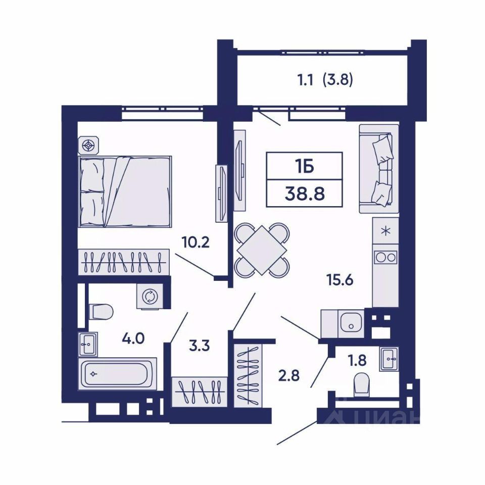 Общая площадь38,8 м²