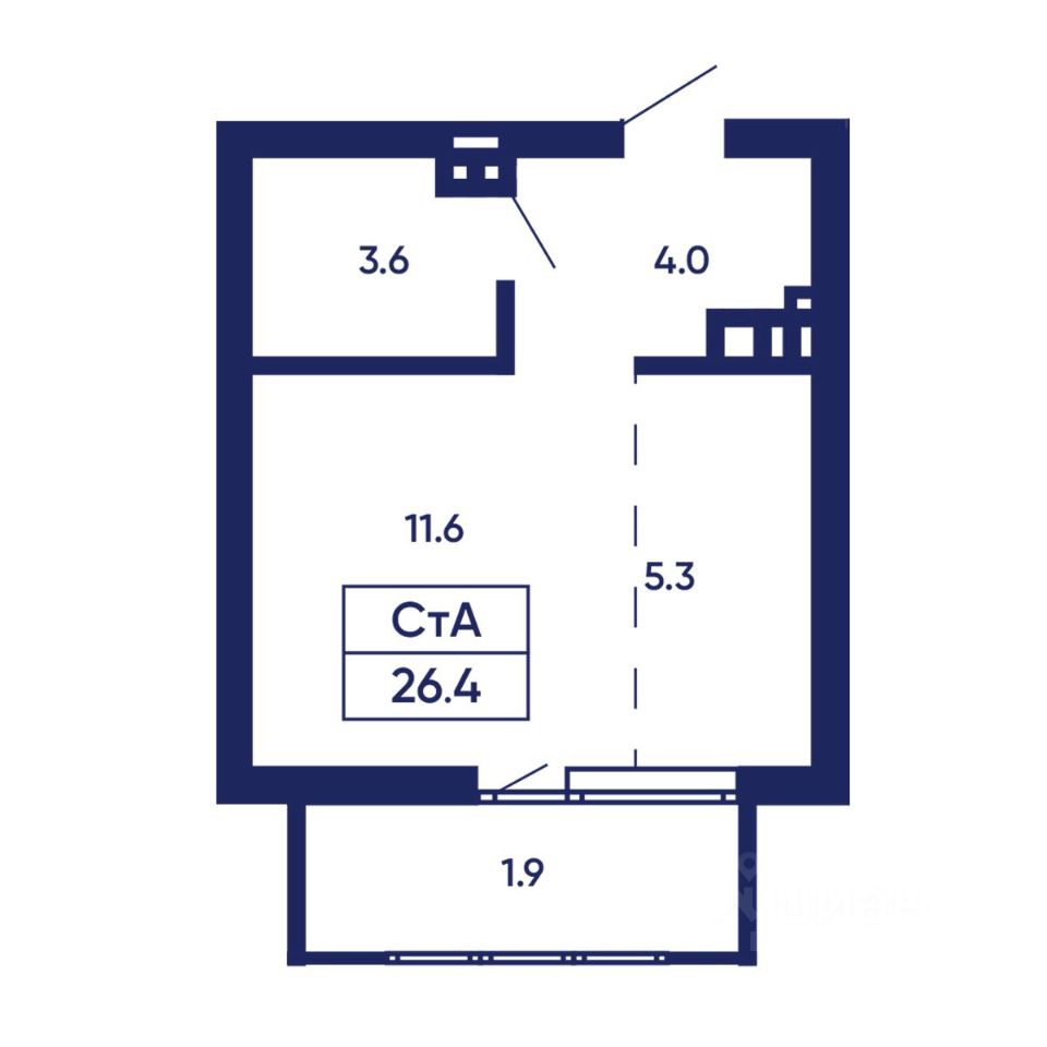 Общая площадь26,4 м²