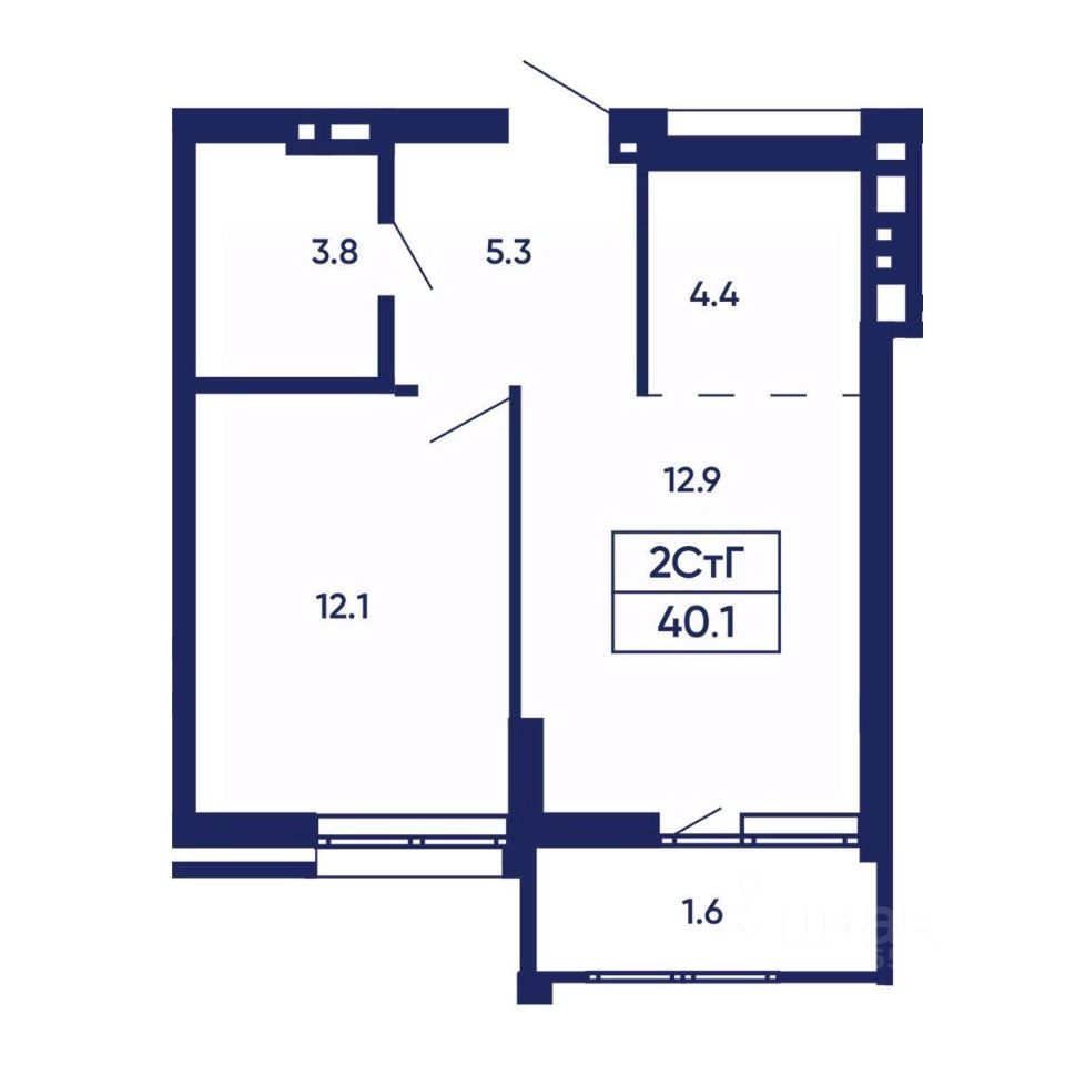Общая площадь40,1 м²
