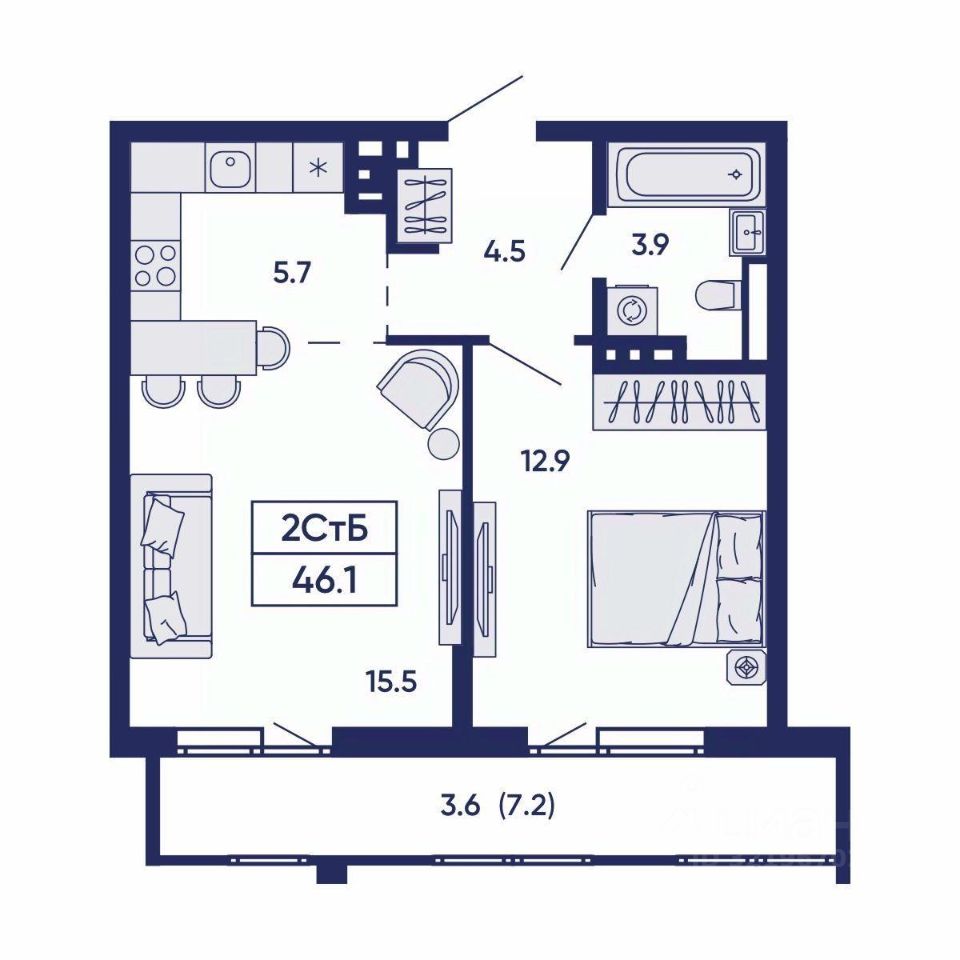 Общая площадь46,1 м²