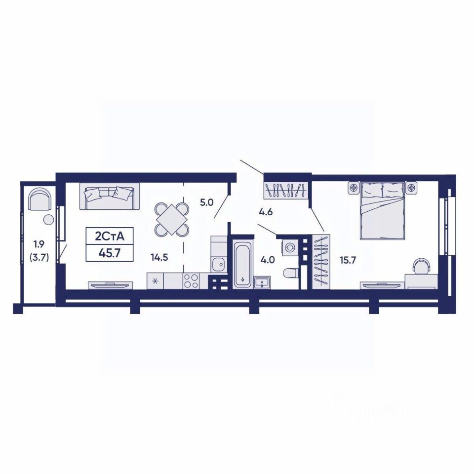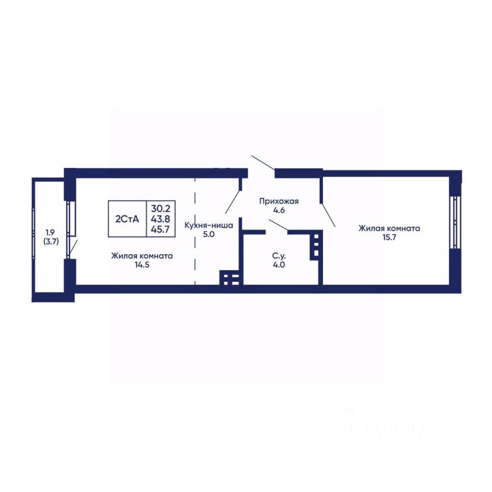 Общая площадь45,7 м²