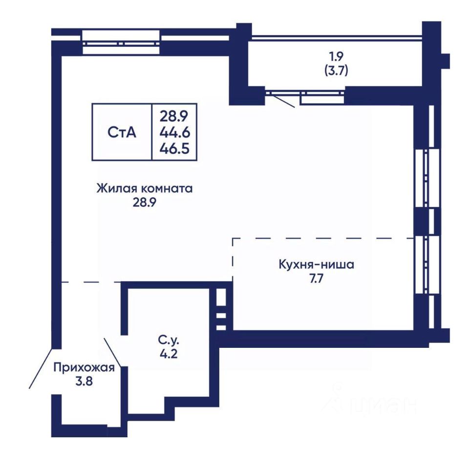 Общая площадь46,5 м²