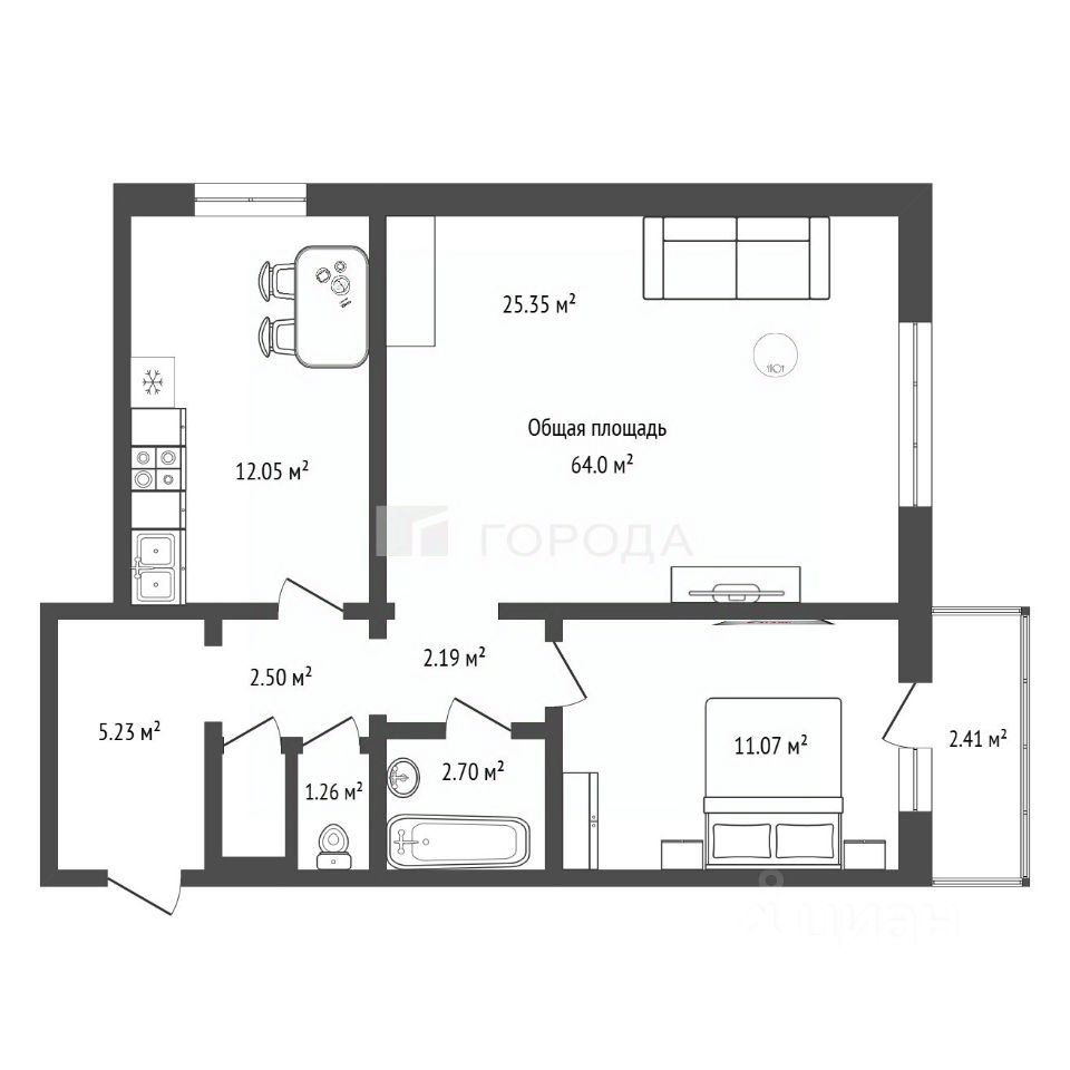 64 м²