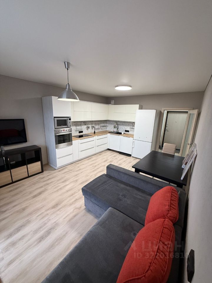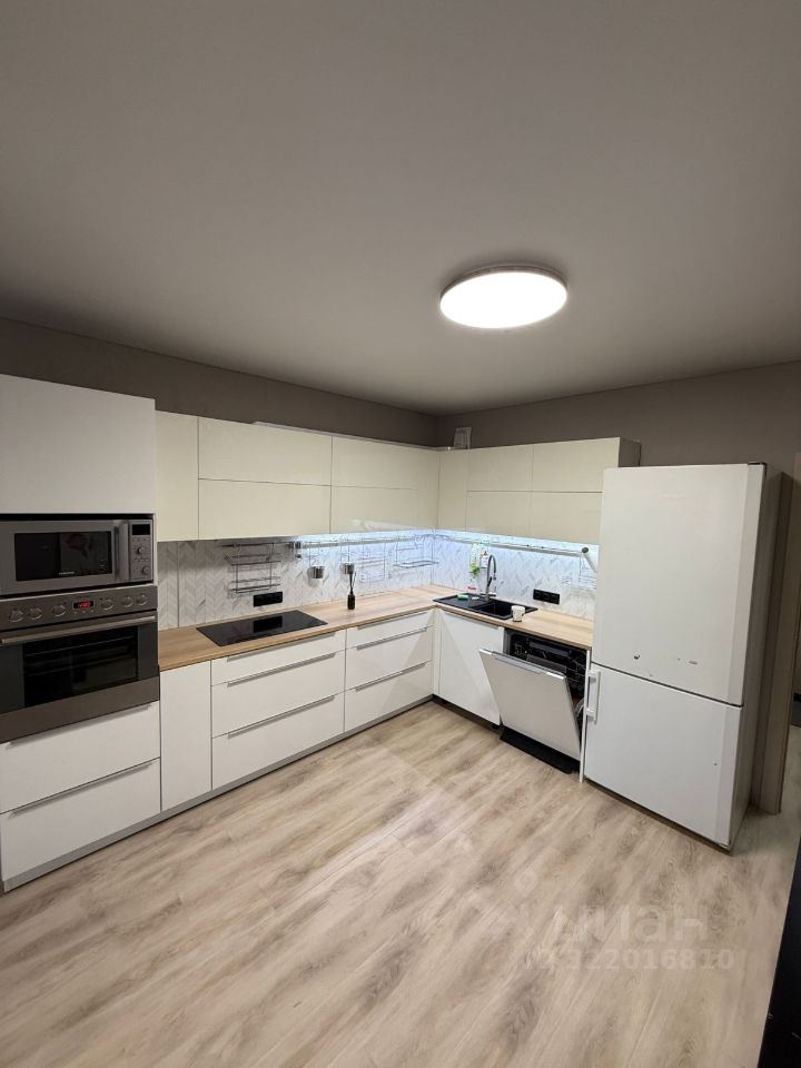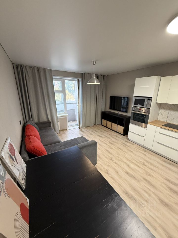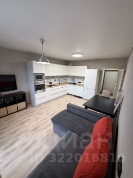 Огромная кухня-гостиная (21кв.м.) с отличным ремонтом, современным кухонным гарнитуром с выходом на просторную лоджию.