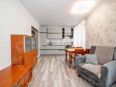 Квартира отличается продуманной планировкой: просторная кухня-гостиная (21 кв. м) с выходом на балкон-террасу, что создает комфортное пространство для отдыха и приема гостей. Изолированная родительская спальня (15 кв. м) и детская комната (10,1 кв. м) обеспечивают приватность для всех членов семьи. Квартира полностью готова к проживанию — выполнен качественный ремонт с использованием долговечных отделочных материалов европейского производства: уложен ламинат с шумоизоляционной подложкой. Санузел совмещенный, облицован керамической плиткой, смонтирована современная сантехника с тропическим душем.