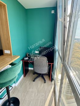 - Балкон: Утеплённый балкон с панорамным видом. Превращён в уютную рабочую и барную зону.