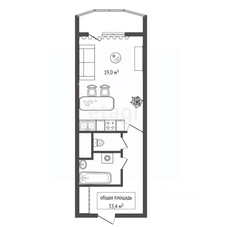 33,4 м²