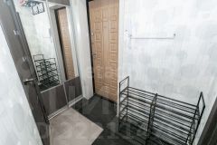 В прихожей оборудован функциональный гардероб и стеллажи для хранения