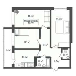 Пространство для общения и уединения: Просторная кухня-гостиная станет местом для семейных ужинов и встреч с друзьями. А две изолированные комнаты позволят каждому члену семьи иметь свой уголок.