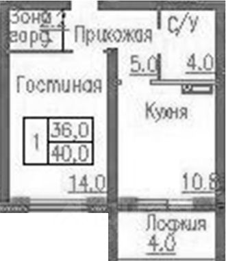 Площадь кухни14 м²