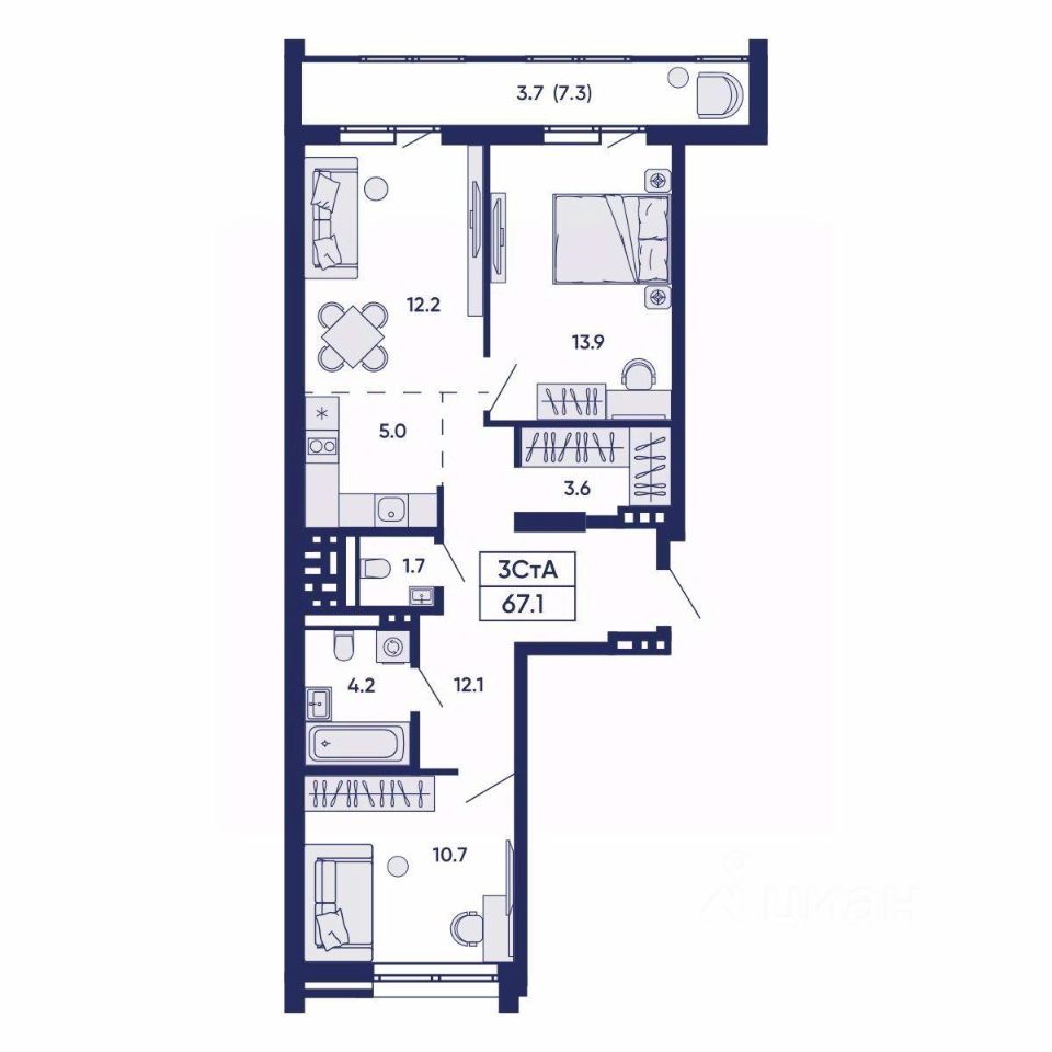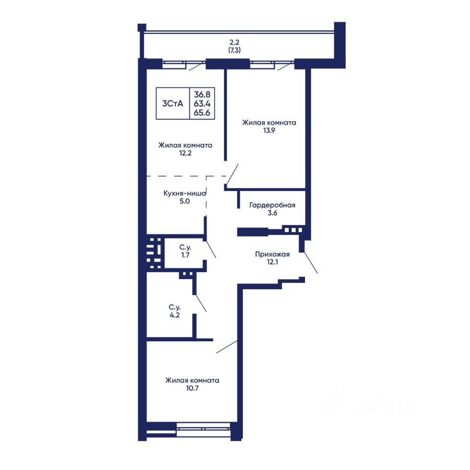 Общая площадь65,6 м²