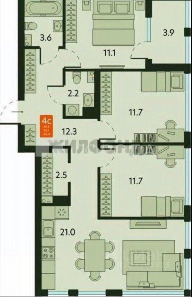 -3 спальни