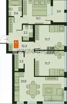 4 комнатная квартира на 9 этаже 15 этажного кирпичного дома, в ЖК Тайгинский парк!