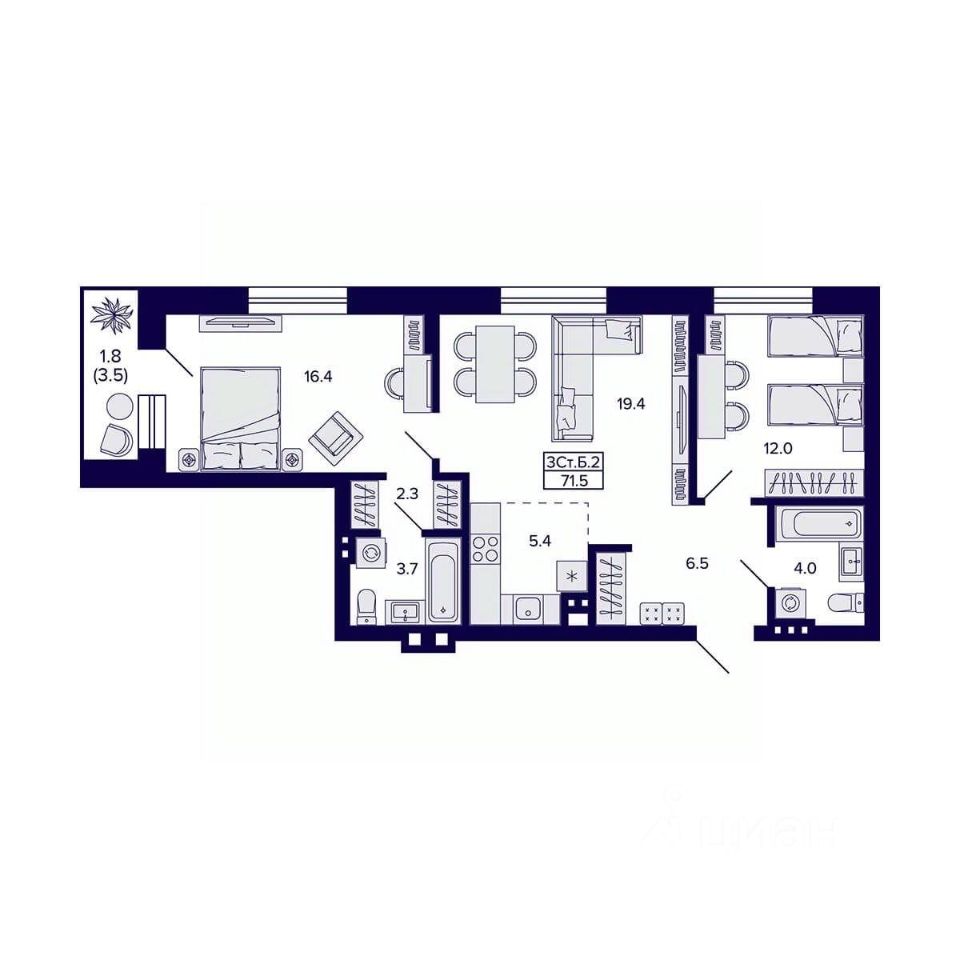 Общая площадь71,5 м²