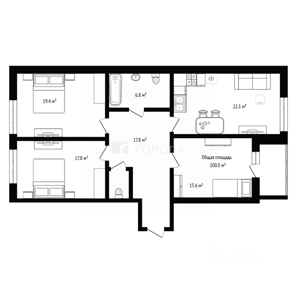 - Общая площадь: 100 кв. м.