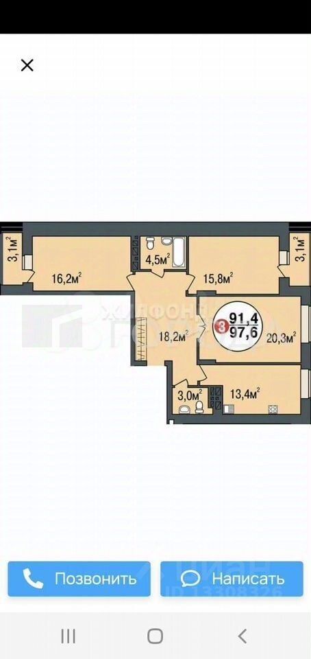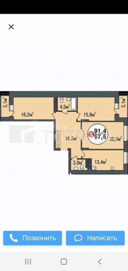 - Общая площадь: 97,6 кв. м.