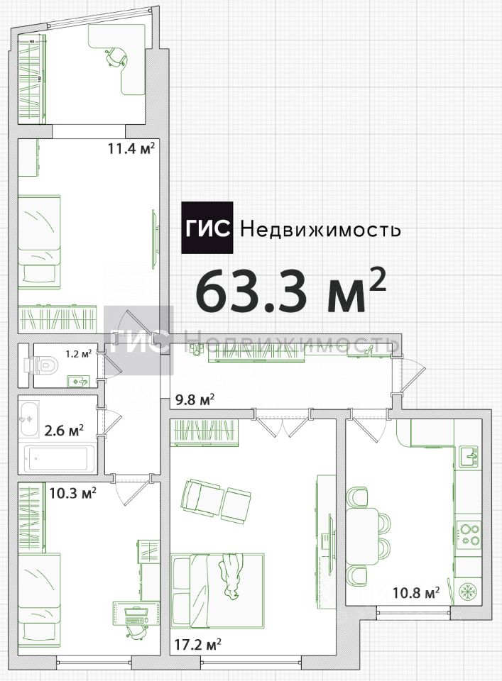 Вся мебель и техника в отличном состоянии.