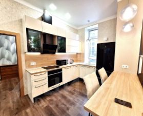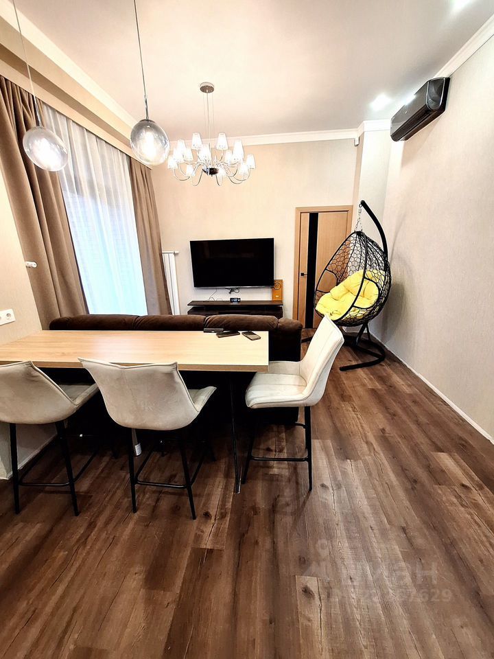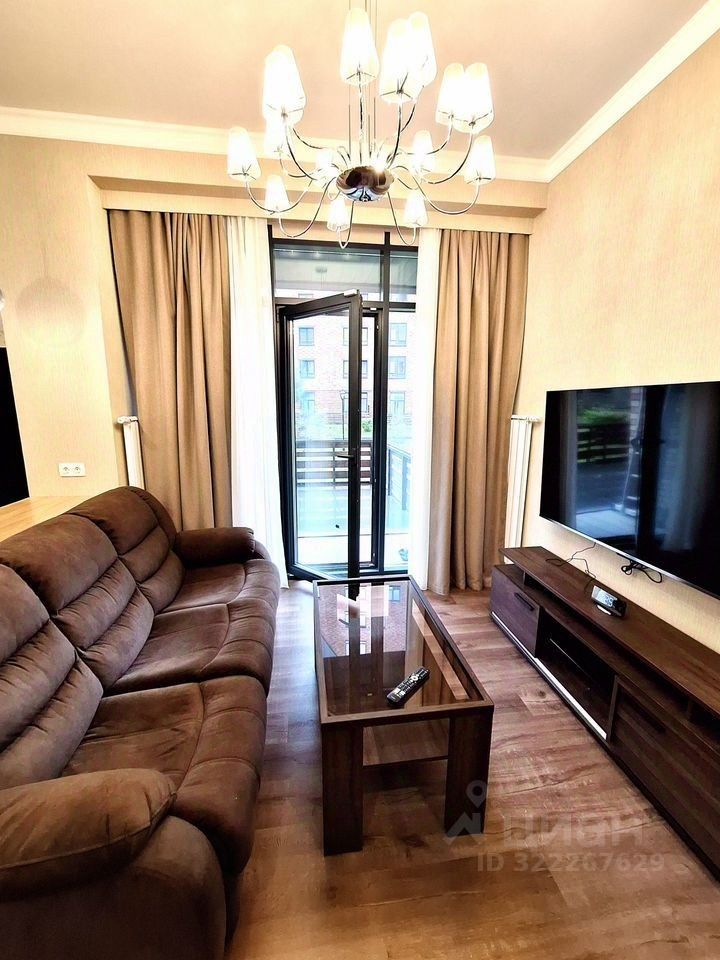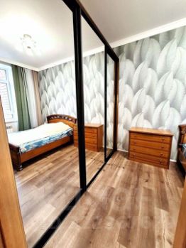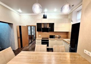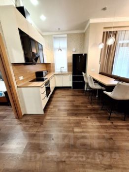 Квартира продается с кухонным гарнитуром и встроенной бытовой техникой. В гостинной установлен кондиционер.