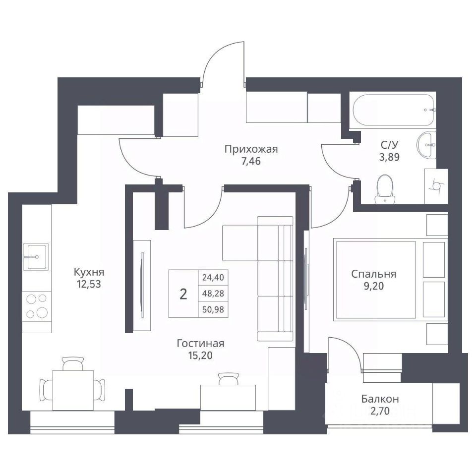 Общая площадь50,98 м²