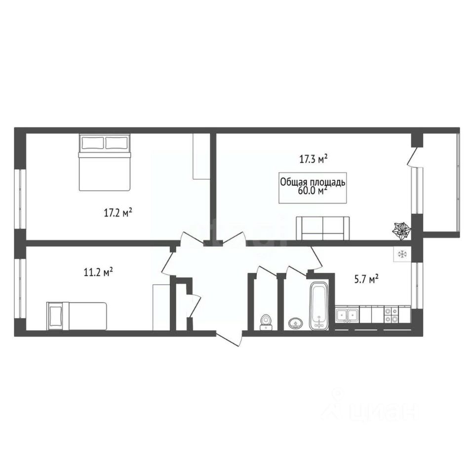 Предлагаeтся к пpодаже 3-комнатнaя кваpтира 60 квадратных метров. В квартире установлены качественные деревянные окна, и деревянные межкомнатные двери.