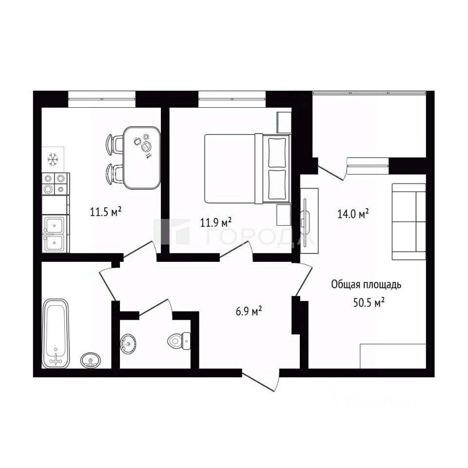 Квартира расположена на улице Тайгинская, 39 в современном кирпично-монолитном доме, построенном в 2023 году. Общая площадь квартиры составляет 50,5 кв. м, жилая — 23,4 кв. м. Две изолированные комнаты (11,5 кв. м и 11,9 кв. м) идеально подойдут как для семьи, так и для пары. Просторная кухня площадью 14 кв. м станет местом для кулинарных экспериментов и семейных ужинов.