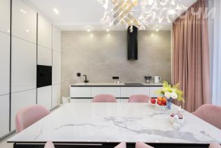— Стильная кухня с встроенной техникой и обеденной зоной