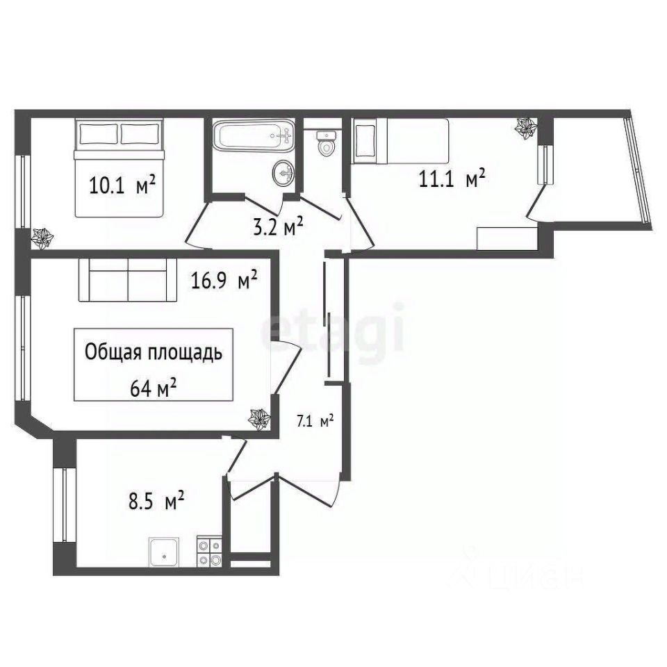 64 м²