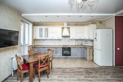 В квартире остаётся кухонный гарнитур с встроенной техникой (без холодильника) и мебель в гардеробной, что избавляет от необходимости дополнительных затрат.