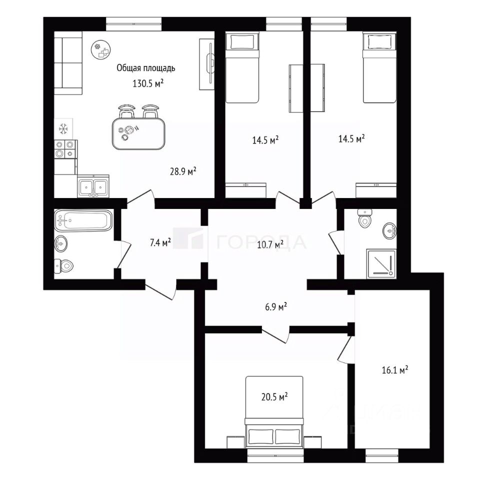 Просторная 4-комнатная квартира для семьи с детьми!
