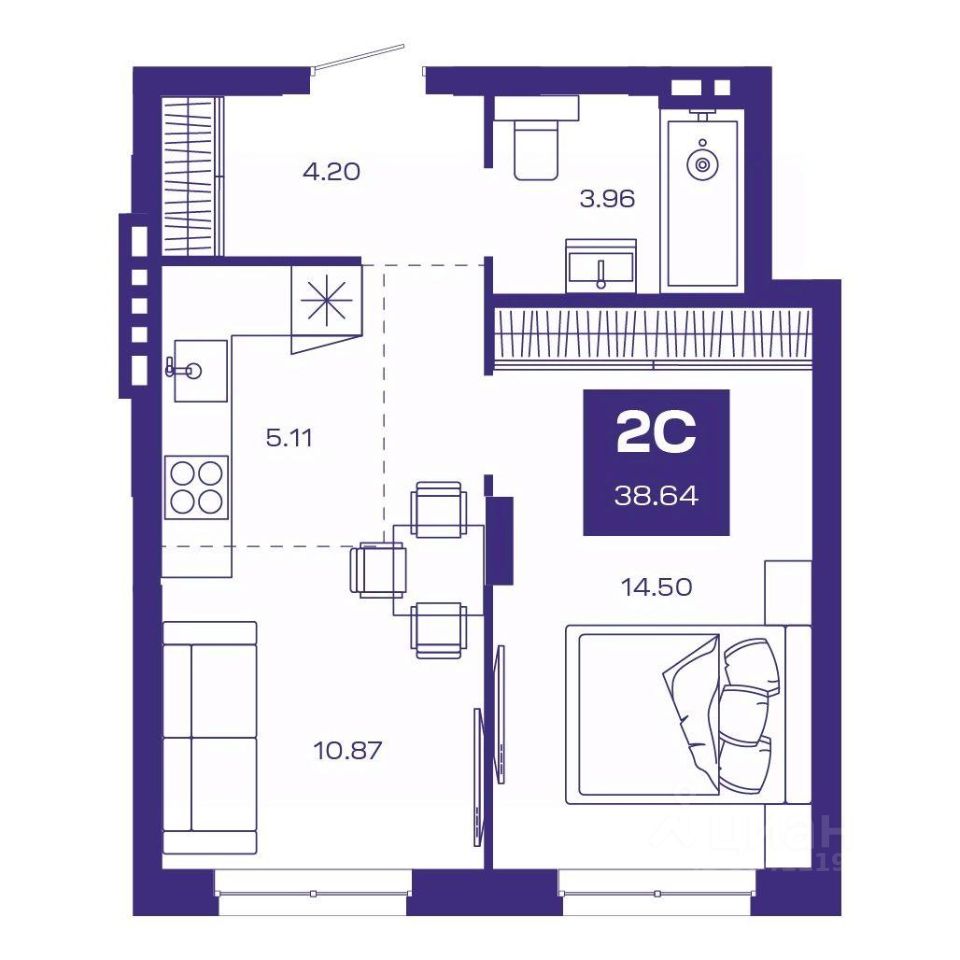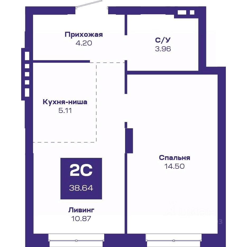 Общая площадь38,64 м²