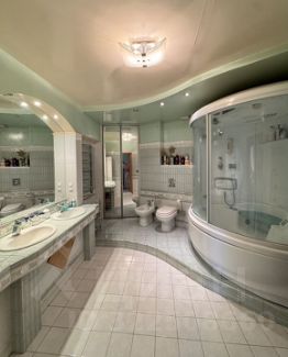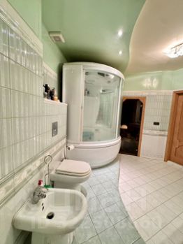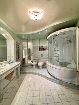 Просторный санузел отделан качественной итальянской плиткой, Итальянская душевая кабина Teuco оснащена функцией Хаммам.