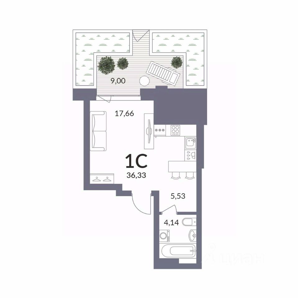 Общая площадь36,33 м²