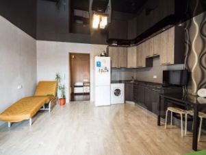 Квартира отличается выгодной квадратной планировкой, что обеспечивает более рациональное использование пространства по сравнению со стандартными вытянутыми студиями и позволяет легко организовать функциональные зоны.